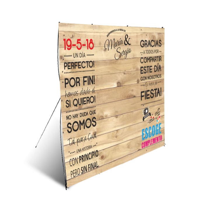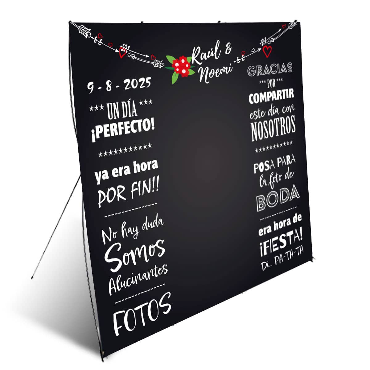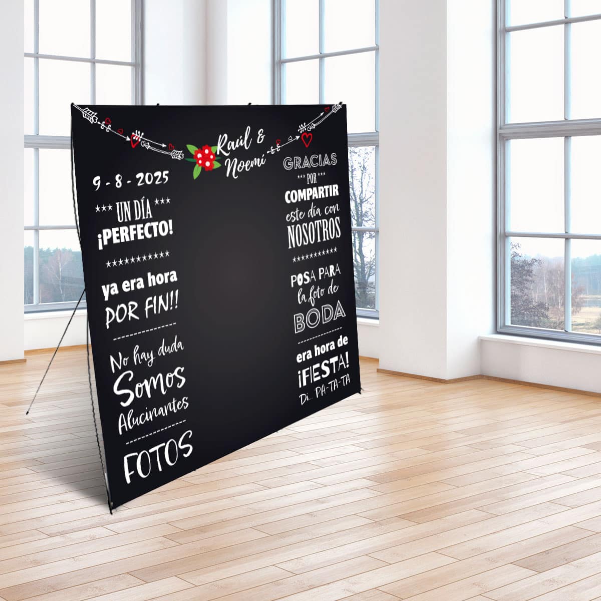 En el día de tu boda, cada detalle visual comunica vuestra esencia. El photocall para bodas de Rotuprint no es solo un fondo para fotos; es una pieza decorativa de alto impacto diseñada bajo estándares de fotografía profesional. Utilizamos una lona de 450g de alta densidad, seleccionada específicamente por su equilibrio entre flexibilidad y opacidad, lo que garantiza que la estructura se mantenga tensa y elegante durante todo el evento.